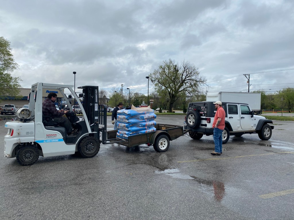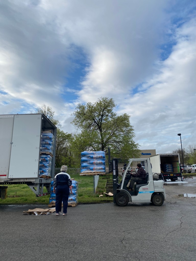 This is the second dog food drive that NWA Mutual Aid has been a part of. During the last drive, thousands of pounds of dog food was loaded and delivered by volunteers. This time they’ve gotten smart: all of the organizations have been coordinated to pick up their own donations besides St. James Baptist Church, where Luke will deliver two palettes later that day.